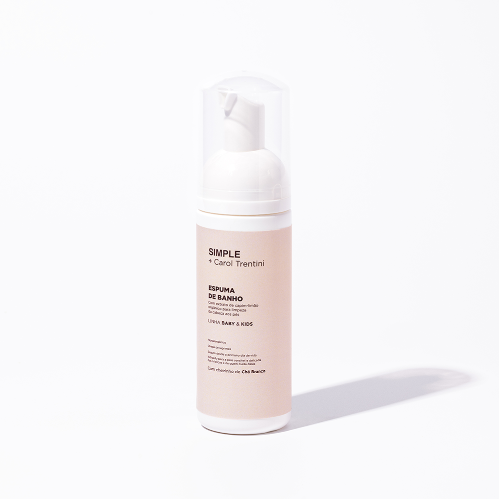 A Simple escolheu apenas o melhor da natureza para a rotina de cuidados do seu filho. Com Hidrolato de Capim Limão Orgânico, Extrato de Lavanda Francesa e Tensoativos de origem natural certificada, a Espuma de Banho da linha Baby & Kids Simple + Carol Trentini é um produto prático e ideal que une beleza limpa e alta performance para cuidar da pele sensível das crianças e do planeta.